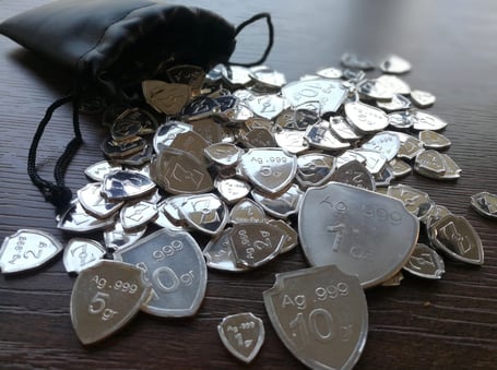 Silberschildchen(eine Mischung aus 1, 2, 5, 10 Gramm und 1 Unze),